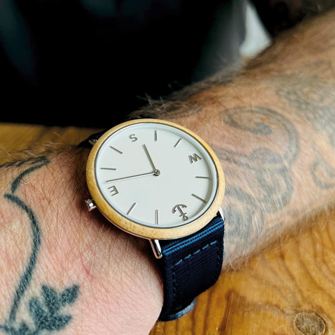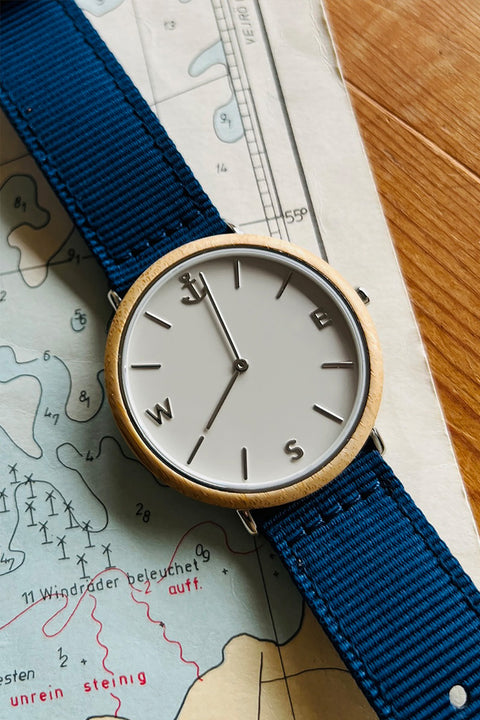 Vi har designet dette armbåndsur i samarbejde med danske Hjemhavn. Enkelt, nordisk unisex design inspireret af havet, sejlads og navigation.